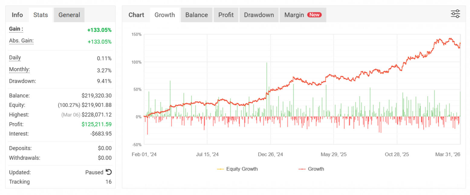 Our trading results are available for viewing through a fully verified external publishing platform. Live results can be viewed through the link provided.